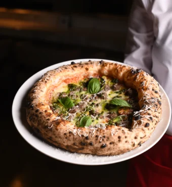 Each pizza is prepared over a 48-hour process that includes four carefully executed stages, resulting in exceptional texture and flavor.